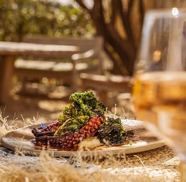 Une carte aux couleurs solaires, aux saveurs sincères, rythmée par les saisons, où chaque assiette raconte une Méditerranée authentique, généreuse et élégante, comme on l’aime.